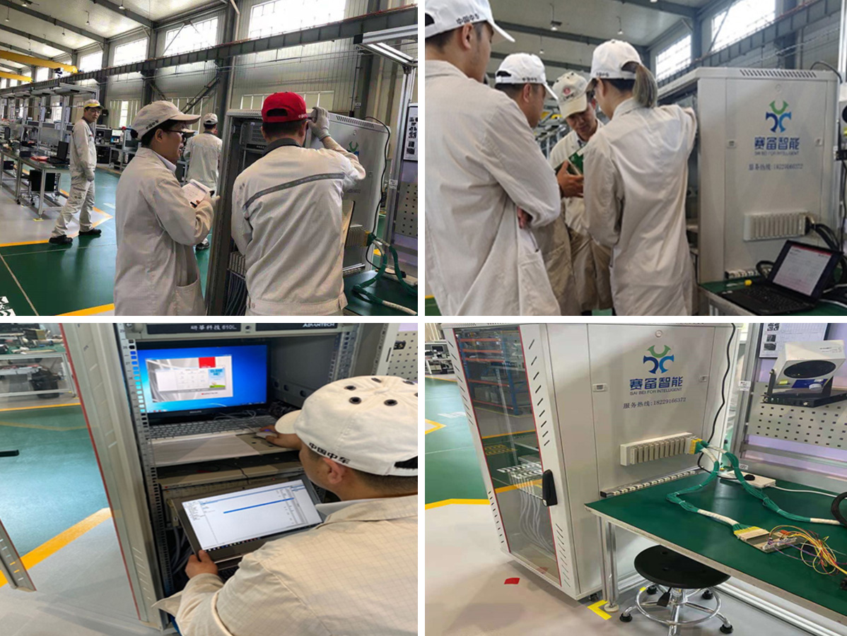 在電氣柜測(cè)試的應(yīng)用中,傳統(tǒng)的手動(dòng)編程方式難度會(huì)隨著柜體規(guī)模的上升而指數(shù)級(jí)增長(zhǎng),除了需要應(yīng)對(duì)復(fù)雜的拓?fù)浣Y(jié)構(gòu),還需要小心翼翼地處理外部激勵(lì)帶來的過載電壓或電流,以防燒毀被測(cè)產(chǎn)品和測(cè)試設(shè)備;同時(shí),在產(chǎn)品查錯(cuò)的過程中也顯得困難重重,代碼的維護(hù)和可讀性同樣難以讓人滿意。賽智能基于多年的,大量的該項(xiàng)目的實(shí)施經(jīng)驗(yàn),創(chuàng)新性地針對(duì)開發(fā)硬件結(jié)構(gòu),采用模式識(shí)別,決策分析以及動(dòng)態(tài)分配算法,基于被測(cè)產(chǎn)品的拓?fù)浣Y(jié)構(gòu),自動(dòng)生成測(cè)試代碼,指數(shù)級(jí)提升測(cè)試效率和準(zhǔn)確性,同時(shí)消除了由于外部激勵(lì)誤操作引起的設(shè)備和被測(cè)產(chǎn)品的燒毀風(fēng)險(xiǎn)。賽備智能電氣工程師帶領(lǐng)團(tuán)隊(duì)在中車時(shí)代電氣客戶現(xiàn)場(chǎng)為設(shè)備交付做技術(shù)支持。
